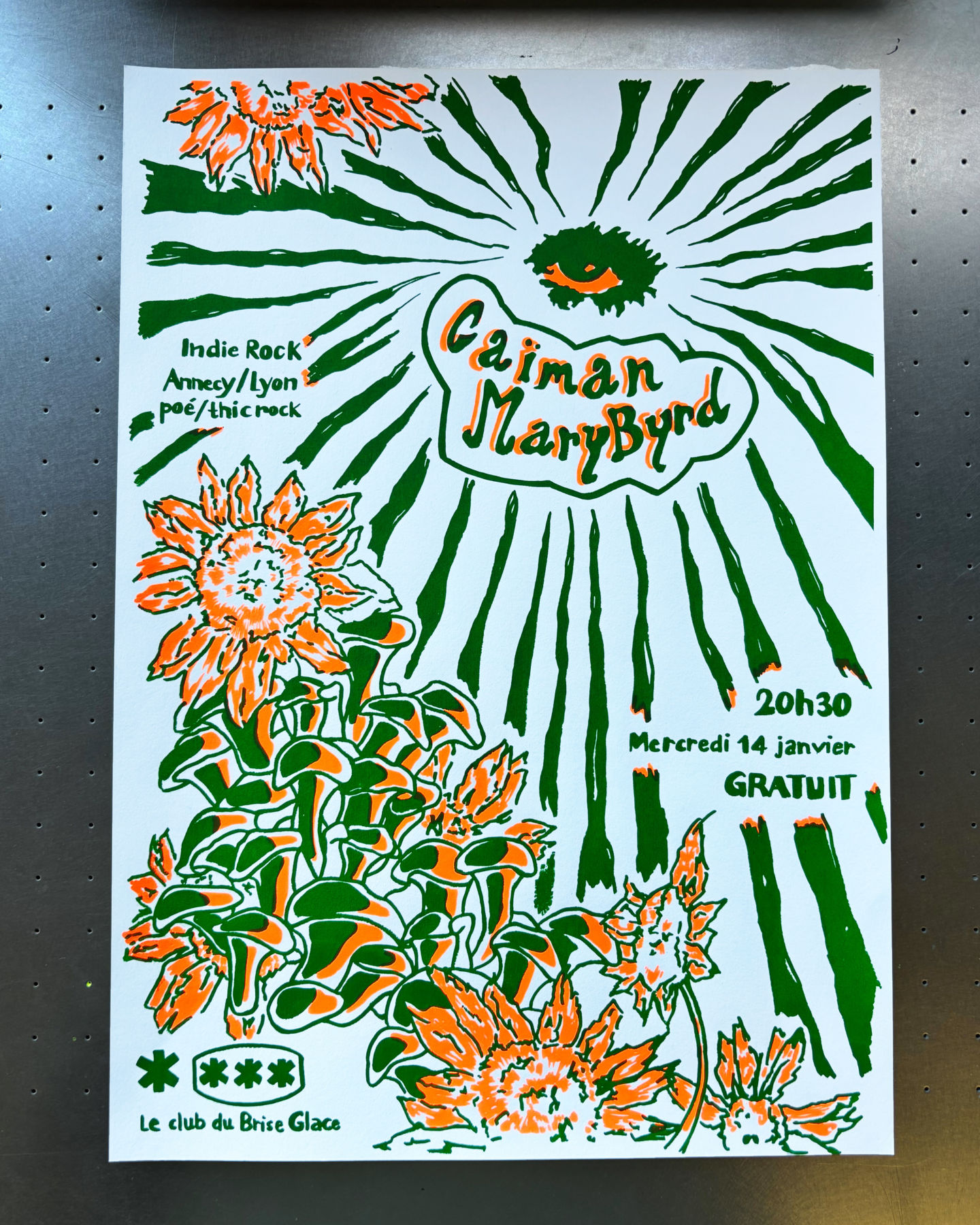 Le Brise Glace s’associe à l’ESAAA (École Supérieure d’Art Annecy Alpes) pour confier la réalisation d’affiches de concerts aux étudiant·x·e qui participent à l’atelier de recherche et de création ARC Illectronisme, Sérigraphie et Rock n’ Roll.